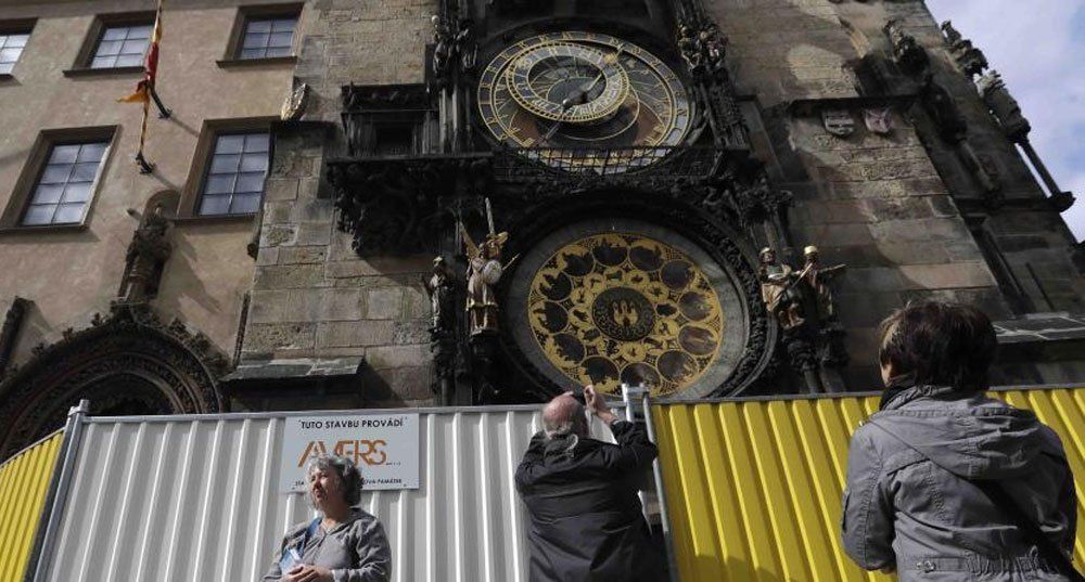 La restauración del viejo ayuntamiento de Praga comenzó el martes y el proceso incluirá retirar su famoso reloj astronómico durante varios meses.Los trabajadores comenzaron a poner andamios alrededor de la torre del ayuntamiento para reparar los daños, algunos de cuales datan de la Segunda Guerra Mundial.La torre, desde donde se ve observan vistas magníficas de la pintoresca zona vieja de la ciudad, estará cerrada a los turistas a partir de mayo. Se espera que reabra para diciembre.El portavoz del ayuntamiento Vit Hofman dijo que el reloj medieval instalado en la torre en 1410, una de las más grandes atracciones turísticas de la capital checa, funcionará hasta enero, cuando será retirado para su restauración.Hofman dijo que el reloj será "desarmado completamente" y que deberá estar de nuevo en su lugar en junio o julio del próximo año