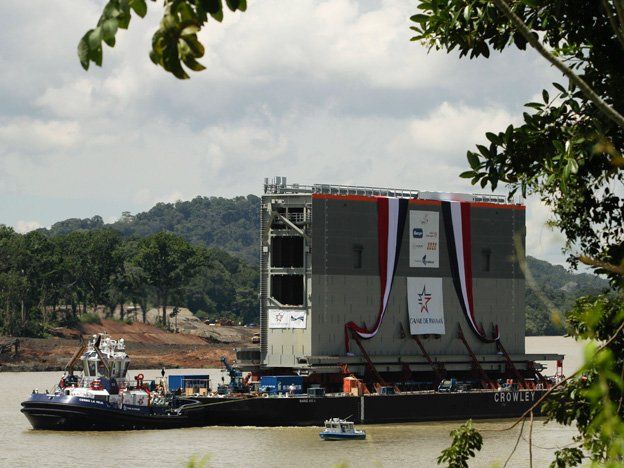 Trasladaron por aguas del Canal de Panamá la primera de ocho compuertas gigantes a instalarse en las nuevas esclusas en la entrada del Pacífico alimentando la esperanza de ver cristalizado una vez por todas el retrasado megaproyecto de ampliación.