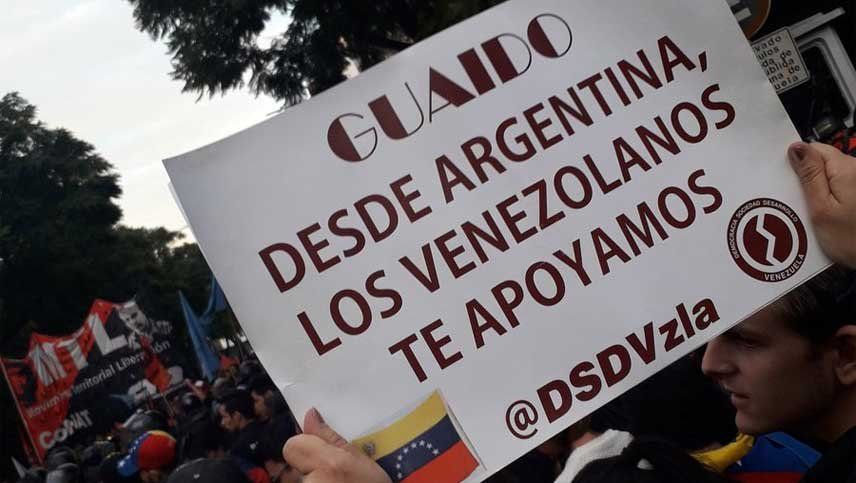 La convocatoria para apoyar a Guaidó fue impulsada a través de las redes sociales, a partir de las 15 de este martes, y reunió, mayoritariamente, a venezolanos que viven en la Argentina.