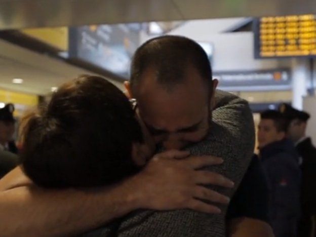 Al otro lado de la terminal, Travis Tolliver pasaba inmigración y aduana y estaba ansioso y nervioso. Principalmente por la barrera del lenguaje, supo hasta el último minuto que alguien había ido a recibirlo.Cuando finalmente salió de la terminal, no se necesitaron palabras. Corrieron para abrazarse largo y tendido.