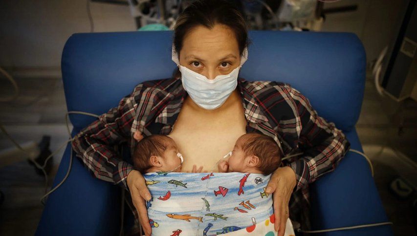 Las tres, madre e hijas, estaban intubadas para sobrevivir: la primera combatía contra el azote del coronavirus Covid-19 en sus pulmones y las otras dos, bebés muy prematuros, peleaban por seguir creciendo fuera del vientre de su madre.