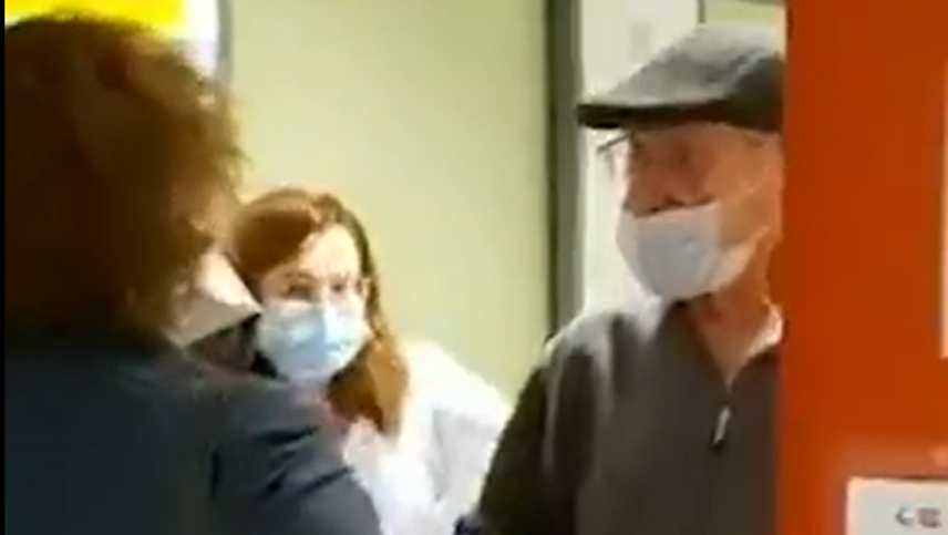 " Venimos a recoger a mi padre que con 86 años ha sido capaz de vencer al coronavirus", relata el hijo del hombre que fue dado de alta antes de agradecerle a todo el equipo médico que atendió al hombre.