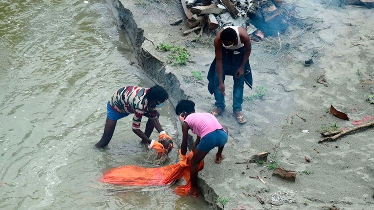 En el momento más duro de la ola de contagios de la variante Delta, cuando los crematorios y las piras funerarias improvisadas no daban abasto, muchas familias del norte y el este de India se vieron obligadas a entregar los cuerpos de sus seres queridos a las aguas del Ganges, sagrado para los hindúes, por falta de espacio o recursos.