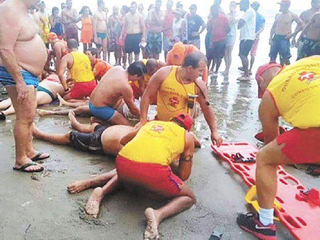 Las víctimas se refugiaban de la lluvia en un kiosco ubicado en Praia do Canto, una de las playas más demandadas de Praia Grande, en el momento en que fueron alcanzados por la descarga eléctrica.