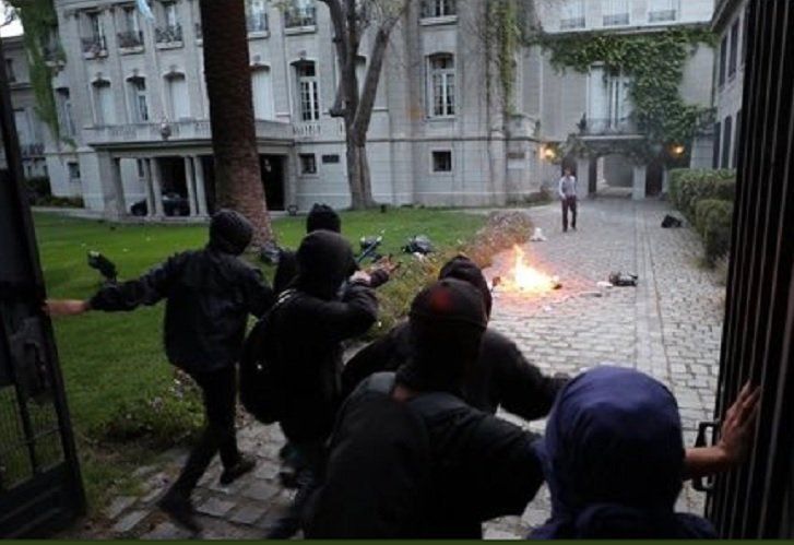 El embajador argentino en Chile, José Octavio Bordón, confirmó que un grupo de unas 50 personas atacaron anoche la sede diplomática en Santiago de Chile, generando la rotura de vidrios y la destrucción de un vehículo, entre otros incidentes.