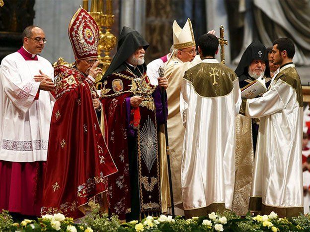 El Sumo Pontífice se pronunció durante una misa en la Basílica de San Pedro que conmemora el centenario de los hechos y a la que asistieron líderes de la Iglesia armenia y el presidente Serge Sarkisian, quien elogió al Papa por decir las cosas por su nombre y "enviar un fuerte mensaje a la comunidad internacional".