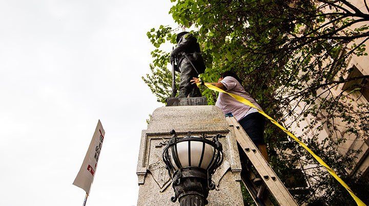 Los activistas en Durham trajeron una escalera y utilizaron una cuerda para tirar el Monumento a los Soldados Confederados que fue develado en 1924.