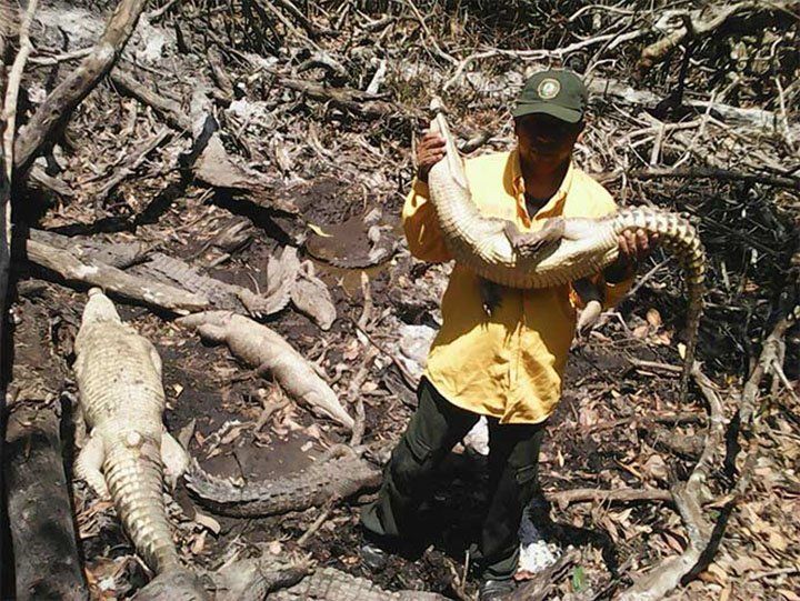 Elementos de la Comisión nacional de Áreas Naturales Protegidas (CONANP) y la Procuraduría Federal de Protección al Ambiente (Profepa), hallaron los restos de 20 cocodrilos que al parecer fueron sacrificados para aprovechar su sangre para supuestos usos medicinales y de consumo humano, en el municipio de Acapetahua, en Chiapas, México.