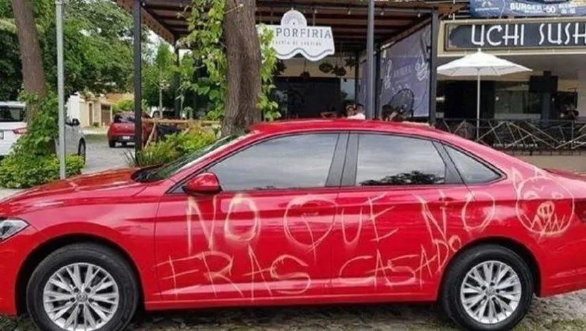 "No que no eras casado". La leyenda puede leerse a los dos costados de un Volkswagen Vento que estaba estacionado en una calle, en Colina, México. Una mujer se enteró que su pareja le era infiel, por lo que, presa del despecho, decidió vengarse de un modo muy agresivo.