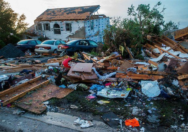 El alcalde de la ciudad, Terry Halliday, dijo que un presunto tornado barrió a la ciudad, primero golpeando la escuela secundaria antes de pasar al sureste sobre casas, dañando también una estación de bomberos.