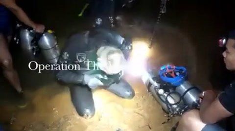 La marina tailandesa dio a conocer las primeras imágenes del dramático rescate de los chicos atrapados en una cueva de Tailandia. En el video se pueden ver los angostos laberintos de piedra, el agua inundándolo todo y la oscuridad plena dimensionan la complejidad del operativo.