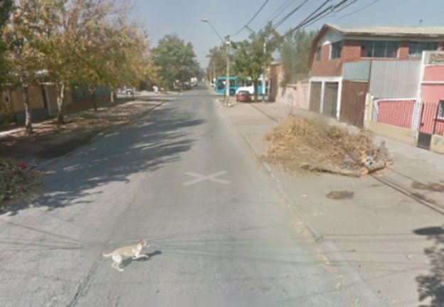 La serie de imágenes muestra primero a un perro frente al automóvil contratado por la empresa para mostrar la vista callejera de Google Maps.