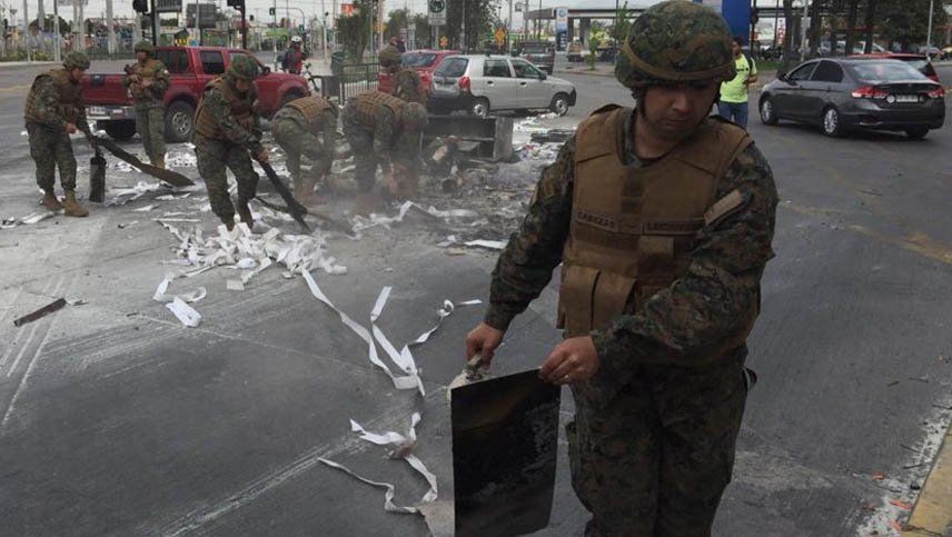 Los militares asumieron esa tarea luego de que el presidente Sebastián Piñera firmara el viernes a la noche el decreto que establece el estado de excepción de emergencia en la provincia de Santiago y Chacabuco, haciendo uso de las facultades que le otorga la Constitución.