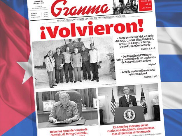 Granma es el órgano oficial del Comité Central del Partido Comunista de Cuba. En su portada tituló: "¡Volvieron!", al hacer referencia a los tres cubanos que estaban encarcelados por espionaje en el país vecino.
