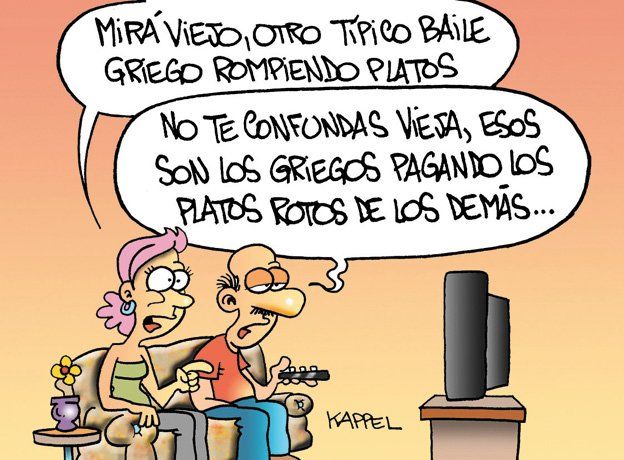 Inicio Mundo 08 de julio de 2015 - 06:31 El humor de Kappel y esos platos rotos en Grecia Por UNO las más leídas Promoción Plan canje de televisores: cómo obtener un Smart TV de 85 pulgadas entregando tu tele viejo Por Daniel Calivares Telekino Telekino: resultados del sorteo 2423 del domingo 12 de abril Por Paula Alonso Sobrenatural El sacerdote Marcelo De Benedictis detalló un exorcismo en el Lagomaggiore Por Redacción de UNO Fuero penal ¿Sin cadáver no hay crimen ni condena? Cinco casos que estremecieron a Mendoza y al país Por José Luis Verderico Lo que se lee ahora Mundo Irán amenazó a Estados Unidos con atacar su flota tras la orden de Trump de bloquear Ormuz Te puede interesar Héroe Un joven salvó a su amigo de una descarga eléctrica en una cancha de fútbol 5 Segunda misión desde 2025 Una flota de 70 barcos partió desde España con ayuda humanitaria para la población de Gaza Tensión mundial Irán amenazó a Estados Unidos con atacar su flota tras la orden de Trump de bloquear Ormuz