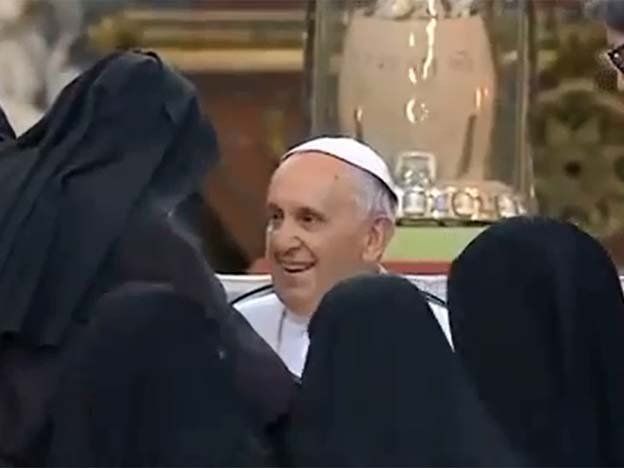 Lejos de ponerse nervioso por la maniobra de las monjas, Francisco comenzó a reír a carcajadas, mientras el cardenal, un poco enojado, las llamaba para que vuelvan a ocupar sus lugares.