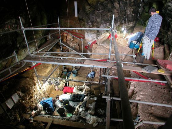 Detrás de ese bloque, precisamente, comenzaron a descubrir restos humanos cubiertos de una pintura rojiza. El hecho mismo de encontrar un entierro de una persona de aquella época ya era extraordinario. “Son muy escasos y se concentran en un periodo más antiguo a este, del gravetiense, hace más de 28.000 años”, apunta el investigador de la Universidad de Cantabria.“Después hay un periodo en el que apenas hay nada, y hace unos 19.000 años empieza a haber más, pero aún muy pocos: media docena en Francia y, hasta este, ninguno en la península Ibérica”, añade. “No se sabe que hacían con los cadáveres, y en casos muy contados los enterraban en las cuevas”, concluye.La rareza de su entierro hace suponer que aquella mujer, que tenía entre 35 y 40 años cuando falleció, podía ser alguien especial. Por algún motivo que aún se desconoce, dejaron descomponer su cuerpo al aire libre (como sugiere el óxido de manganeso que cubre los huesos) y después, antes de enterrarlo, lo cubrieron con ocre.Esta pintura roja, hecha con óxido de hierro, que, según han desvelado los análisis, no se produjo con materiales autóctonos, es una muestra más de que aquellos humanos dedicaron un especial esfuerzo al funeral de la que se ha bautizado como “La Dama Roja”.La práctica de cubrir con tinte rojo los huesos de algunos muertos es antigua y ni siquiera es exclusiva de los Homo sapiens. De hecho, según comenta el responsable del hallazgo, la dama cántabra le debe su nombre a “La Dama de Paviland”, un esqueleto de 33.000 años de antigüedad cubierto de ocre que, finalmente, resultó haber pertenecido a un hombre.Los cuidados especiales no libraron a la señora de sufrir algunas vicisitudes poco propias de un personaje que podría tener algo de sagrado. En algún momento tras el entierro, un perro o un lobo profanó la tumba y royó la tibia. Después, el hueso fue recuperado y se volvió a enterrar con el resto del cuerpo. Aunque el cadáver está bastante completo, faltan el cráneo y muchos huesos grandes, que probablemente fueron trasladados a otro lugar, de un modo similar al que se hacen con las reliquias en otras religiones.Una dieta con mucha carne La ventanita abierta en la cueva de El Mirón hacia el periodo Magdaleniense, como se conoce la época en que vivió “La Dama Roja”, también ha dejado otros detalles sobre la posible forma de vida de aquellos grupos humanos.El hallazgo de polen agrupado en el enterramiento podría significar que entre los honores que dispensaron a la difunta también se encontraban las flores. No obstante, González, tratando de ser cauto en la interpretación de los vestigios, comenta que otra posibilidad es que ese polen hubiese aparecido allí porque estuviese en el estómago de la enterrada, que habría podido consumir las flores por su valor medicinal.Por último, el análisis del esmalte de los dientes de la mujer, el sarro acumulado en ellos y su desgaste ha permitido reconstruir cómo era su alimentación. Alrededor del 80% de su dieta la constituían animales terrestres, como el ciervo o el íbice, y en torno al 20%, peces marinos, probablemente salmón. Además, se sabe que también tenían un parte de alimentación vegetal y que comían hongos.Para completar la información que ya se ha recopilado, y que se publicará este mes en un número especial de la revista Journal of Archaeological Science, se espera un análisis del ADN extraído de restos encontrados en la cueva de El Mirón.El responsable seráSvante Pääbo, el investigador del Instituto Max Planck de Antropología Evolutiva de Leipzig (Alemania) que ya dirigió la secuenciación del genoma neandertal.Esos datos servirán para saber si, como se sospecha, estos habitantes prehistóricos del sur de Europa fueron quienes repoblaron el norte del continente cuando los hielos lo permitieron. Por el momento, estudios anteriores ya han mostrado que la península Ibérica sirvió de refugio a los ancestros de los salmones que ahora habitan el Mar del Norte o el Báltico.