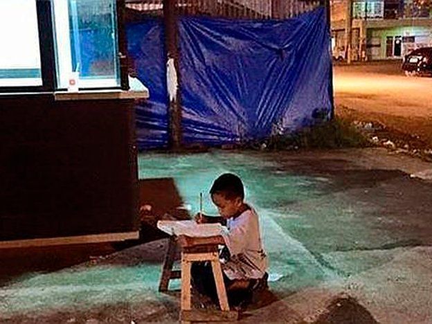 Se llama Daniel Cabrera, tiene 9 años y vive en Mandaue, Filipinas. Hasta hace tres semanas era un ser humano prácticamente anónimo. Pero una joven llamada Joyce Torrefranca lo fotografió mientras estudiaba a la luz de un local de venta de hamburguesas y compartió la imagen en Facebook, viendo en ella un inspirador retrato de la lucha por una meta.El pasado 30 de junio te contamos cómo la instantánea estaba dando la vuelta al mundo, cautivando a miles de personas con su emotivo mensaje. Hoy podemos añadir que el mundo está devolviendo a Daniel todo lo que él le ha dado.