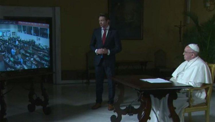 Se trataba de la segunda vez que un pontífice se comunica con el espacio, ya que anteriormente lo había hecho Benedicto XVI, en mayo de 2011. "Buenos días o buenas tardes, no sé, porque cuando estás en el espacio nunca se sabe", comenzó Francisco, sentado en una sala del Vaticano conectada vía satélite con los seis astronautas.