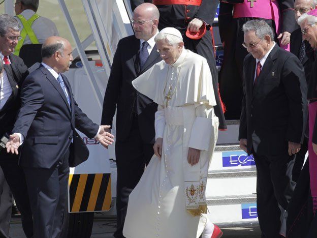 El avión del Papa aterrizó hacia las 14H30 locales (19h30 GMT) en el aeropuerto de Santiago de Cuba, donde era esperado por el presidente Raúl Castro y la jerarquía católica cubana, encabezada por el cardenal Jaime Ortega y el arzobispo de la zona, Dionisio García.