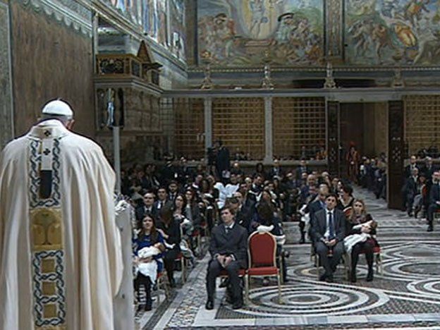 Mientras algunos de los 13 niños y 20 niñas lloraban en la habitación famosa por los frescos de Miguel Ángel, el Papa Francisco pidió a los fieles que recordaran a las madres pobres de todo el mundo. "Desafortunadamente, hay muchas que no pueden alimentar a sus hijos", dijo.