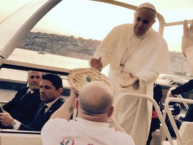 Enzo Cacialli ed Antonio Greco preparano la pizza e pochi minuti dopo Enzo Cacialli la consegna a PAPA BERGOGLIO........