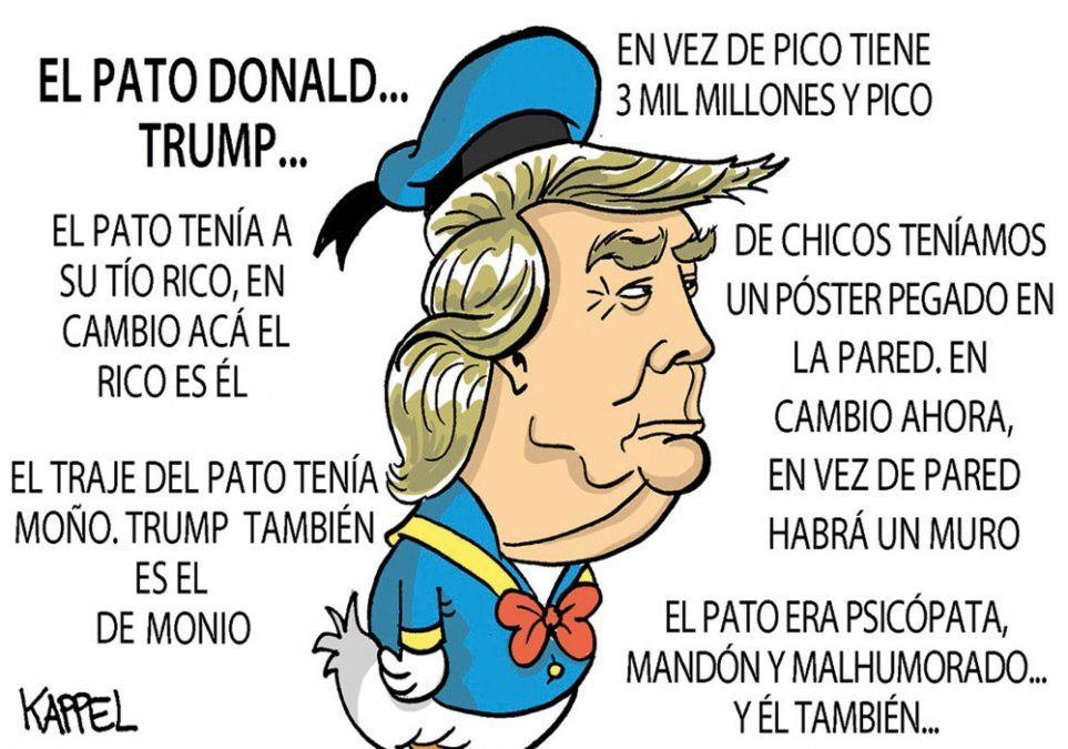Inicio Información General El humor de Kappel El humor de Kappel. Esperamos que no sea tan pato por el bien de la humanidad. 20 de enero de 2017 - 08:21 El pato Donald... Trump Por UNO Temas relacionados: El humor de Kappel Humor las más leídas Variación Anticiparon un nuevo aumento de la RTO en Mendoza y el trámite rondará los $60.000 Por Miguel Ángel Flores Justicia Federal La madre de Cristian Guardati, desaparecido hace 34 años, pidió el juicio para 4 ex policías Por José Luis Verderico FÚTBOL INTERNACIONAL Boca lo aguantaba en su visita a Cruzeiro pero se quedó sin nada por el gol de Villarreal sobre el final Por Raúl Adriazola Violento crimen Tragedia en el Rally: piloto asesinado de un disparo en plena competencia Por Luciano Carluccio