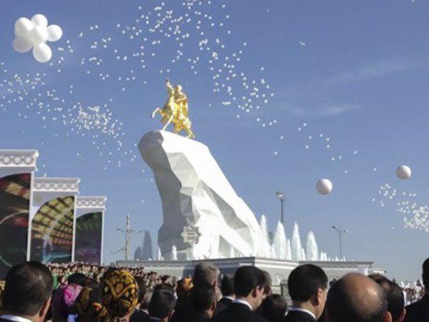 Una gigantesca estatua dorada del presidente de Turkmenistán,Gurbangulí Berdimujammédov, ha sido erigida este lunes en Ashjabad, capital de esa república centroasiática limítrofe con Irán y Afganistán. "¡Gloria a Arkadag!", han coreado los estudiantes asistentes a la ceremonia en referencia a Berdimujammédov, conocido como 'El protector' entre los ciudadanos de la llamada 'República del gas' por sus ingentes recursos de ese hidrocarburo, según han informado medios rusos.La estatua ecuestre, que junto al pedestal de mármol blanco alcanza una altura de 21 metros, muestra a Berdimujammédov con una paloma en la mano y recuerda a la famosa estatua de bronce de Pedro I El Grande de San Petersburgo. Bañada en oro de 24 quilates, a la inauguración de la estatua han asistido miles de personas.