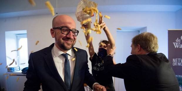 El primer ministro belga, Charles Michel, fue rociado con mayonesa este lunes y bombardeado con patatas fritas por feministas que protestaban por las políticas de austeridad de su gobierno.