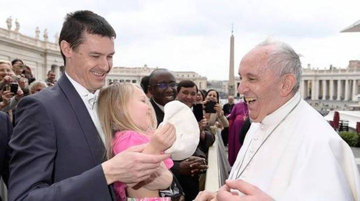 Con la simpatía y desparpajo de ser sólo una niña, la ahijada de una blogger católica se hizo viral al reunirse con el Papa en Roma. No sólo consiguió el saludo de Francisco, sino que la pequeña se convirtió en un suceso cómico después de que la niña decidiera tomar el solideo del sumo pontífice.
