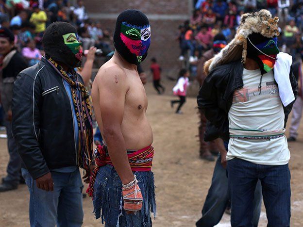 El rito, que incluye música a todo volumen, incontables cajas de cerveza y la presencia de la imagen del niño Jesús, se denomina Takanakuy, la palabra en quechua que significa llanamente "golpearse entre sí".La fiesta popular se celebra varias veces al año pero la ceremonia central se realiza el 25 de diciembre.