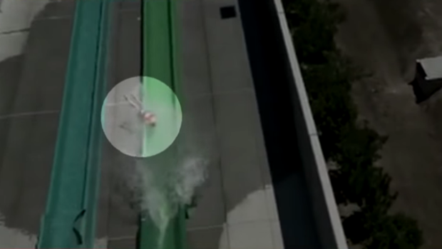 El debut tan esperado del nuevo parque acuático de Dublín, un pueblo situado a pocos kilómetros de San Francisco, California, que había costado 43 millones de dólares, dio un giro aterrador cuando, durante la tarde del sábado, un niño de 10 años logró salir prácticamente ileso, tan solo con unos rasguños en la espalda, después de salir disparado de un tobogán acuático. El joven fue tratado inmediatamente por los servicios de primeros auxilios del recinto.La atracción fue estrenada ese mismo día y en el momento del accidente llevaba funcionando tan solo 90 minutos. El tobogán constaba de tres pisos y un ángulo de 80 grados.Un video divulgado por East Bay Times muestra como las piernas del joven se desvían del recorrido y arrastran al resto del cuerpo fuera de la atracción. En las imágenes se puede ver como el director adjunto de la ciudad, que estaba de pie junto a la atracción cuando ocurrió el accidente, corre de inmediato a socorrer al pequeño. "Se levantó inmediatamente, sorprendido como cualquier niño que se acaba de caer", explicó Smith a los medios de comunicación locales. "Estaba preocupado por si había sufrido algún tipo de conmoción cerebral, porque físicamente se encontraba bien".Los funcionarios del parque cerraron el tobogán, así como las atracciones adyacentes del "Dublín Screamer" y se pusieron en contacto con el fabricante el cual alegó que la rampa había sido probada "decenas de veces" antes de abrirse al público. Tras lo cual, el parque se excusó ante los reporteros diciendo que "antes de tirarse por el tobogán se les recuerda que deben mantener los brazos y las piernas cruzadas, y el niño las llevaba separadas".Por el momento, la atracción, bautizada como "The Emerald Plunge" ("La Zambullida Esmeralda"), permanecerá cerrada hasta que "el personal de mantenimiento compruebe que el tobogán es seguro y se asegure de que todo funciona de acuerdo con lo establecido", ha asegurado Jim Rodems, director del parque.