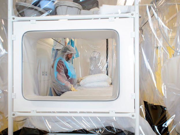 Las enfermeras tuvieron que usar cinta adherente para cerrar las aperturas de sus endebles atuendos quirúrgicos, estaban preocupadas de que sus cuellos y cabezas estuvieran expuestos mientras cuidaban a pacientes con diarrea y vómitos violentos, dijo Deborah Burger, del sindicato National Nurses United.