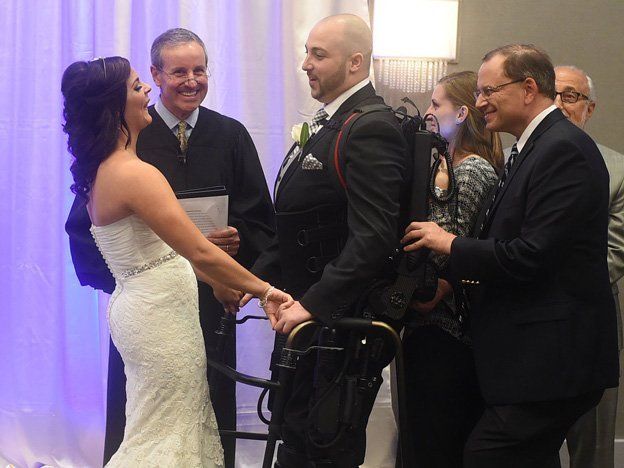 Matt Ficarra ha estado paralizado del pecho hasta las piernas desde que tuvo un accidente hace tres años, pero eso no le impidió caminar hasta el altar.