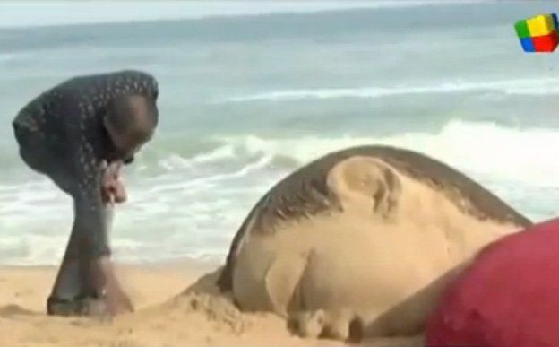 El escultor indio Sudarsan Pattnaik elaboró un monumento en la arena para rendirle un homenaje al pequeño Aylan Kurdi, el niño sirio que apareció ahogado en costas de Turquía, cuando el bote en el que viajaba junto a su familia naufragó.La obra de grandes dimensiones reproduce la icónica fotografía que ha dado la vuelta al mundo; es decir, muestra al pequeño de apenas 3 años muerto boca abajo en la orilla de la playa.