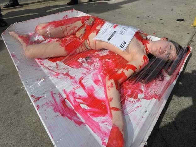 Con protestas tan singulares como cubrirse de sangre y empaquetarse cual si estuvieran en la heladera de un supermercado, modelos de diversos país se manifestaron en contra del consumo de carne, en el marco de la conmemoración de La Semana Mundial para la Abolición de la Carne que se lleva a cabo en varios países.