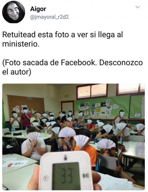 Como en este caso, un reclamo sobre lo que sufren los alumnos en las escuelas, que también padecen la falta de mantenimiento edilicio, con una enorme foto con los chicos con abanicos, derivó en una seguidilla de tuits dignos de enmarcar.