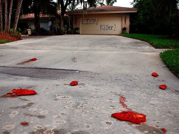 La Policía aseguró este miércoles que investiga los grafitis y actos vandálicos contra la vivienda en el suroeste de Florida (Estados Unidos) del cazador estadunidense quemató al león Cecil en Zimbabue, un acto que ha desatado una oleada de críticas en todo el mundo.Un video difundido por el diario Orlando Sentinel muestra lapuerta del garaje de la vivienda del odontólogo Walter Palmer en Marco Island (costa suroeste de Florida) cubierta con una grafiti en la que se lee "¡Asesino de leones!", así como el patio con patas de cerdo ensangrentadas dispersas por el suelo.