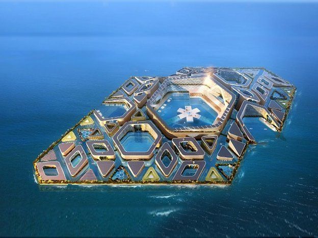 La ciudad, diseñada por la empresa de arquitectura basada en Londres AT Design Office y la empresa de ingeniería china CCCC, consiste en bloques hexagonales conectados por túneles submarinos, que servirían de calles y zonas peatonales.