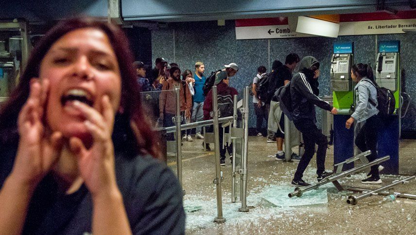 La situación más tensa se vivió en la estación Los Héroes, en pleno centro de la ciudad, donde un grupo de jóvenes se enfrentó a agentes antidisturbios de Carabineros en la zona donde están las máquinas para validar los boletos y acceder a los andenes.