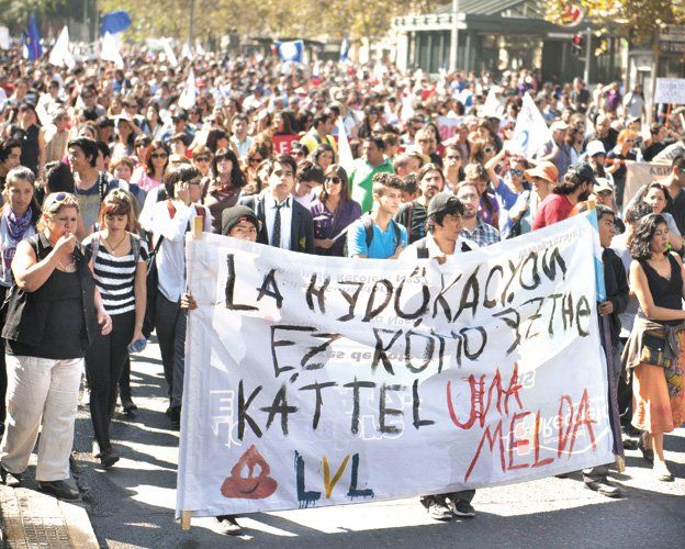 Miles de profesores y estudiantes chilenos se manifestaron ayer por las calles de Santiago para reclamar educación pública y para pedir una nueva carrera profesional para los docentes que mejore sus condiciones laborales.La movilización, convocada por el Colegio de Profesores y respaldada por la Coordinadora Nacional de Estudiantes Secundarios (CONES), empezó en la céntrica plaza Italia, habitual punto de partida de las protestas, y la columna de manifestantes se desplazó por la Alameda, la principal avenida de la capital, sin que se registraran incidentes.