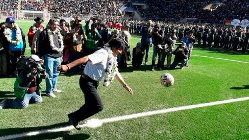 Se sabe de las cualidades futbolísticas de Evo Morales. No es un Marco Antonio Etcheverry pero se defiende.