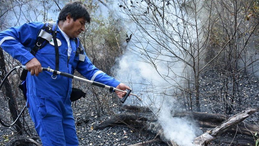 El presidente boliviano hizo las veces de bombero y con una manguera ayudó a apagar los grandes incendios que azotan y tocan el Amazonias del lado de Bolivia.