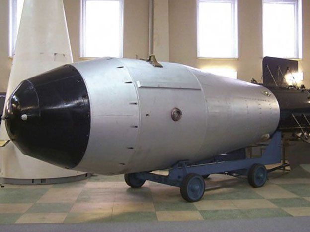 La "Bomba del Zar", la bomba atómica más potente del mundo creada por científicos soviéticos y convertida en símbolo de la Guerra Fría con sus de ocho metros de largo y sus 25 toneladas de peso, se expone por primera vez en Moscú.Llamada oficialmente AH602, esta bomba de hidrógeno que fue probada con éxito en 1961 forma parte (sin su carga atómica) de una exposición sobre la historia nuclear rusa que se puede ver en el Manège de Moscú, un edificio histórico de la capital.