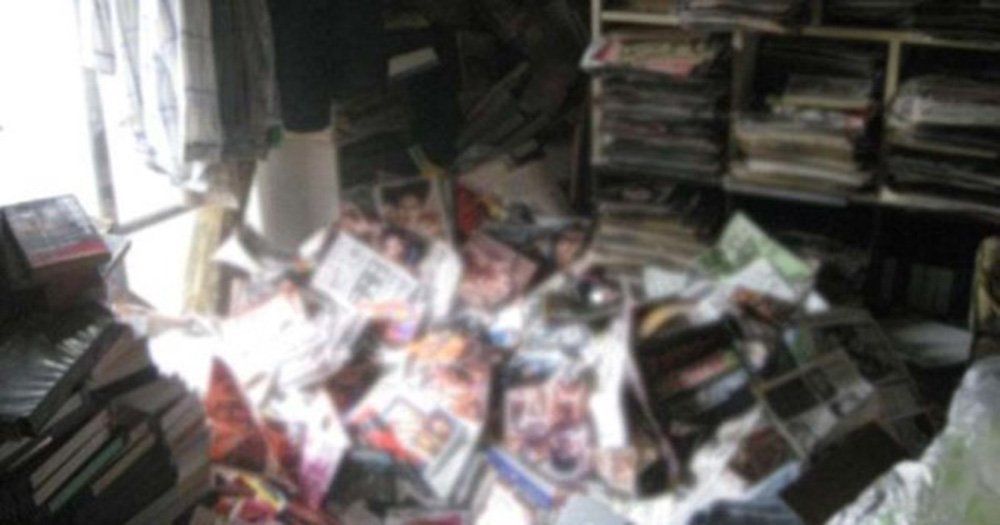 Joji, de 50 años, falleció al quedar enterrado debajo de varias toneladas de revistas de contenido sexual que cayeron de su propia biblioteca porno que pesaba unas seis toneladas.