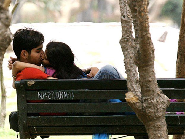 La sociedad india es muy estricta en cuanto al comportamiento público de las parejas y a la moral familiar; es raro ver en las calles de una ciudad india a una pareja cogida de la mano y aún menos un inocente beso en la mejilla.