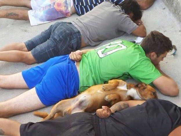 En plena operación en la localidad de Vargem Grande, en el norte de la isla de Santa Catarina, un policía tomo una fotografía a un tumbado junto a un grupo de sospechosos.