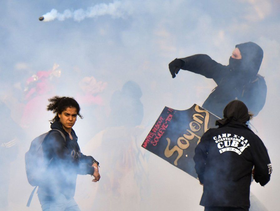 La marcha en París fue interrumpida en varias ocasiones por enfrentamientos, a los que las fuerzas del orden respondieron empleando gas lacrimógeno y un cañón de agua.