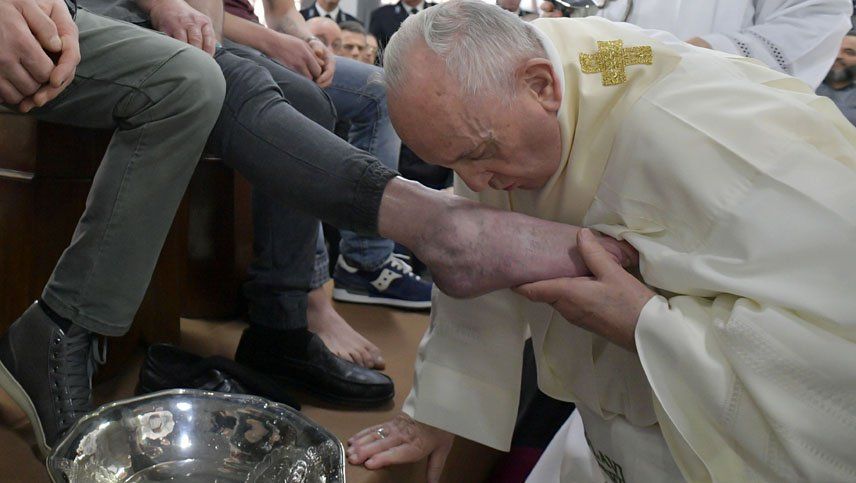 "Es un gesto que hacían los esclavos, cuando no había asfalto en las calles y la gente llegaba a las casas con polvo en los pies. Y es lo que hace Jesús: un gesto de esclavo, él que tenía todo el poder", recordó el Pontífice al celebrar la misa de la Cena del Señor, según se denomina en la tradición católica.
