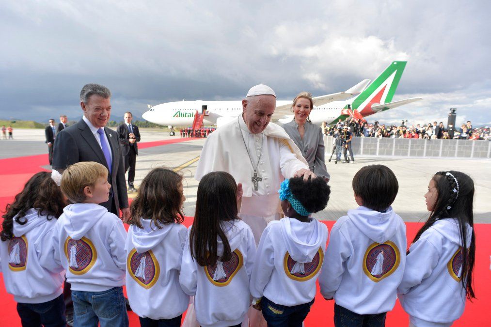 El papa Francisco se instaló en Colombia para una visita con la que buscará "ayudar al país en su camino de paz" y durante la que dará señales de apoyo a la "reconciliación nacional" tras el acuerdo entre el gobierno y la ex guerrilla FARC para poner fin a cincuenta años de conflicto.